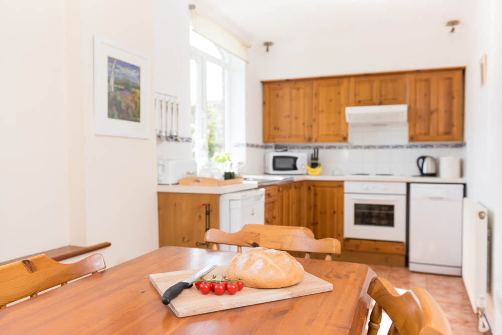 The fully fitted kitchen includes pine units, a stainless steel sink and ample work surfaces. There is also a full sized cooker, microwave and dishwasher. The dining area is furnished to a high standard, with a large pine table and six chairs.